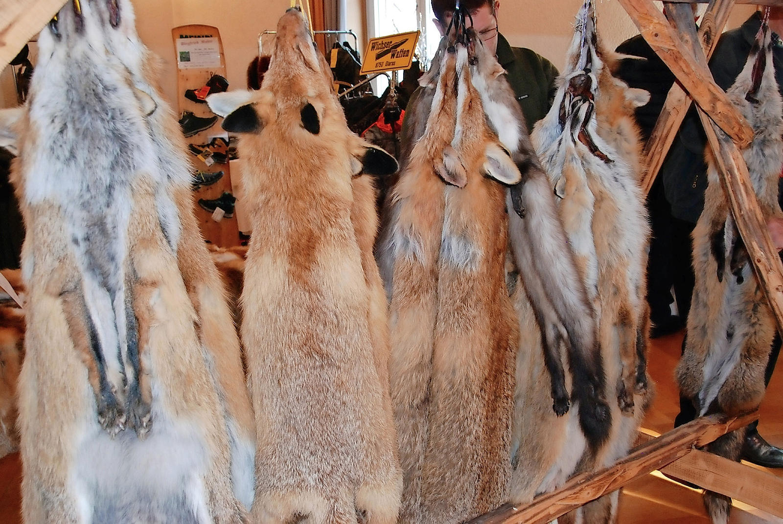 Der Saal des Schützenhauses in Glarus wird einmal im Jahr zum Treffpunkt für Jäger aus nah und fern. An diesem Tag werden aber nicht nur Felle von Fuchs und Co. verkauft, sondern auch Trophäen ausgestellt.