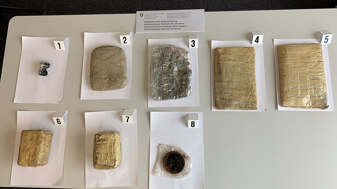 Zollbeamte am Flughafen Zürich haben einen 67-jährigen Schweizer geschnappt, der eine ganze Palette verschiedener Drogen in seinem Koffer ins Land schmuggeln wollte. Der Mann führte 8000 Thai-Pillen, 1050 Gramm Heroin, 500 Gramm Haschisch und 50 Gramm Opium mit sich.