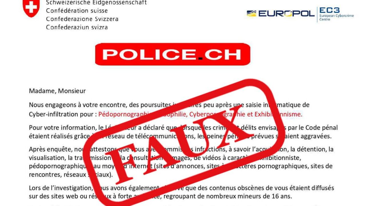 Wie die Kantonspolizei am Donnerstag mitteilte, erfolgen die Benachrichtigungen angeblich im Auftrag und mit dem Briefkopf der Schweizerischen Eidgenossenschaft. Sie sind mit den Bezeichnungen «Police.ch», «Cybercrimepolice.ch» und «Europol» versehen. Die Empfänger im Wallis erhalten das Mail in der Regel auf Französisch.