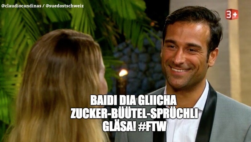 Yes, Sam ist eine Runde weiter! Und auch der St. Galler Raphael hat sich eine Rose gesichert. Mit dieser frohen Kunde beenden wir unseren Live-Ticker und wünschen Euch allen einen schönen Abend und eine gute Nacht. Möge der Rosenduft mit Euch sein. Hier am Public-Viewing kann man die Luft langsam schneiden, weshalb wir uns jetzt schleunigst verziehen. Eine Zusammenfassung der heutigen Folge gibt es morgen, Dienstag, auf unserer Website. Gute Nacht und schöne Träume. Euer Ticker-Team.